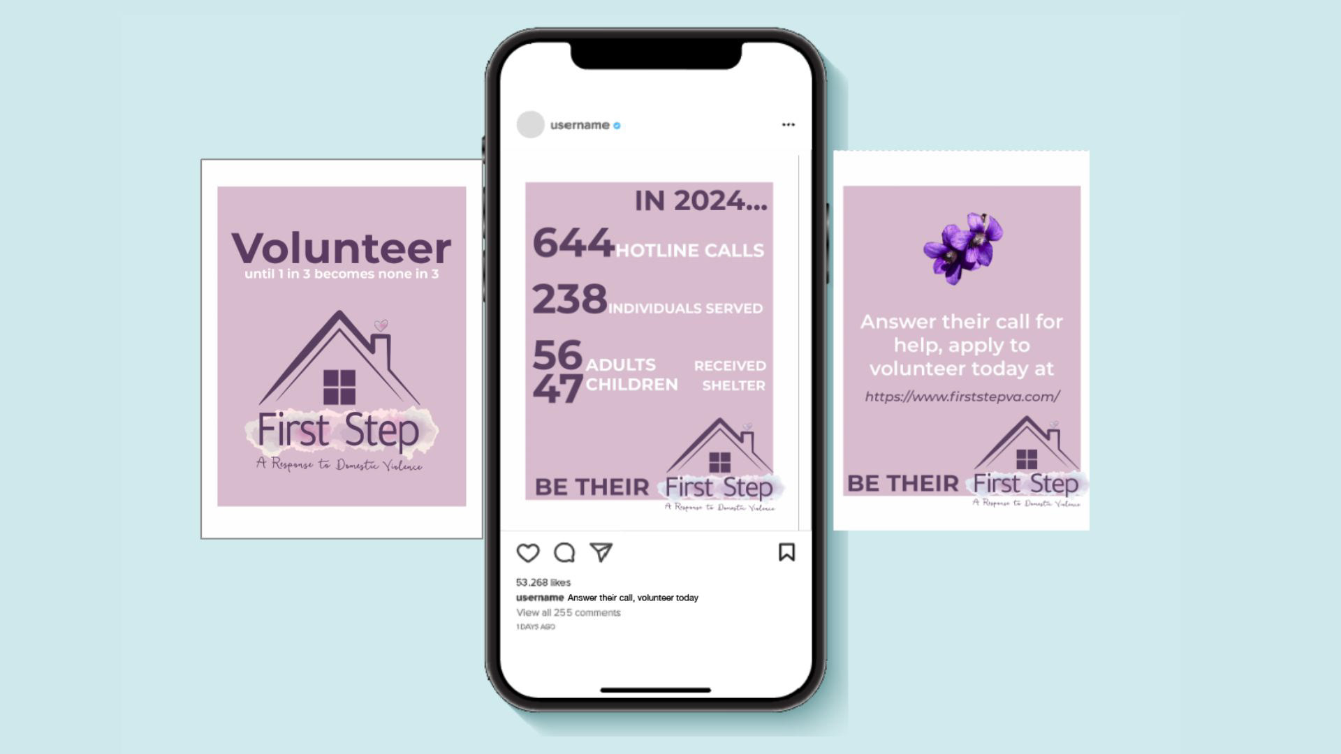 As part of my SMAD 201: Foundations of Visual Communication final project, my group and I created a full multimedia campaign for First Step: A Response to Domestic Violence, a local nonprofit supporting survivors of abuse.