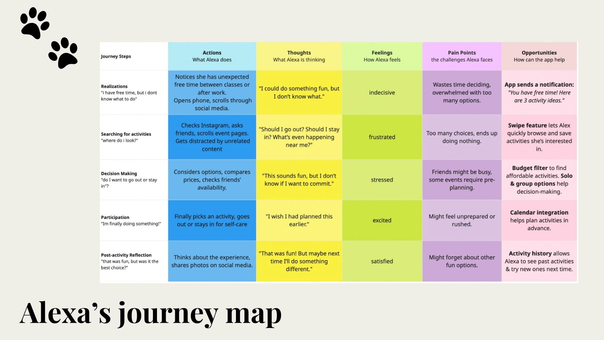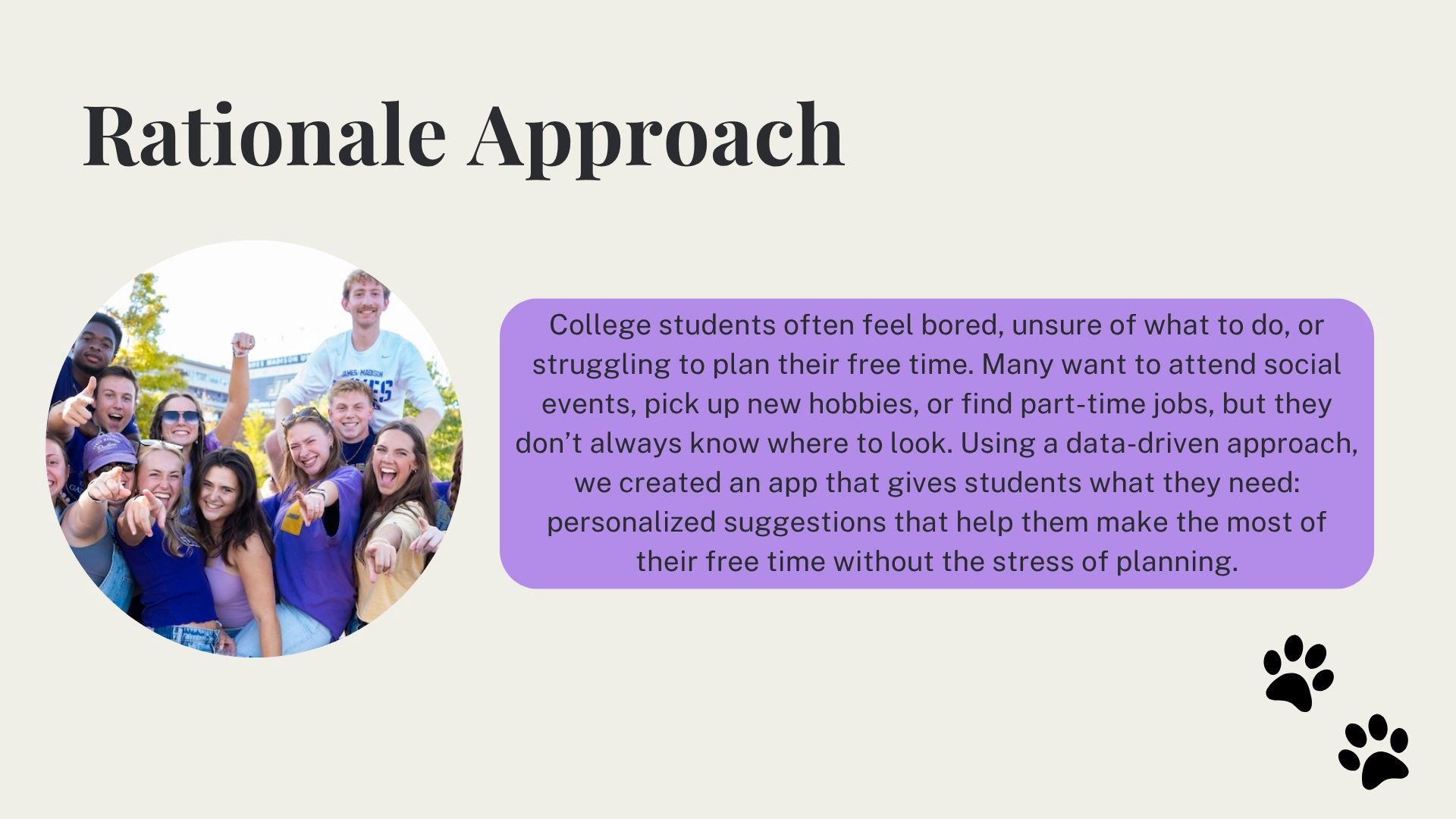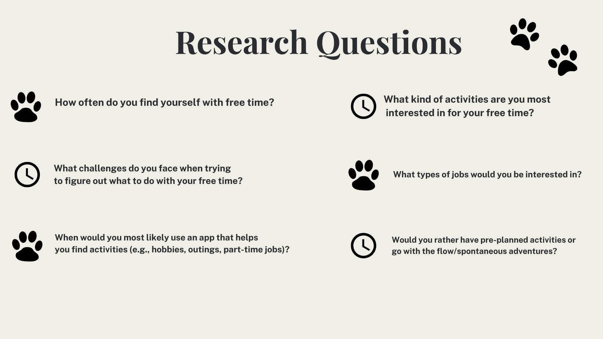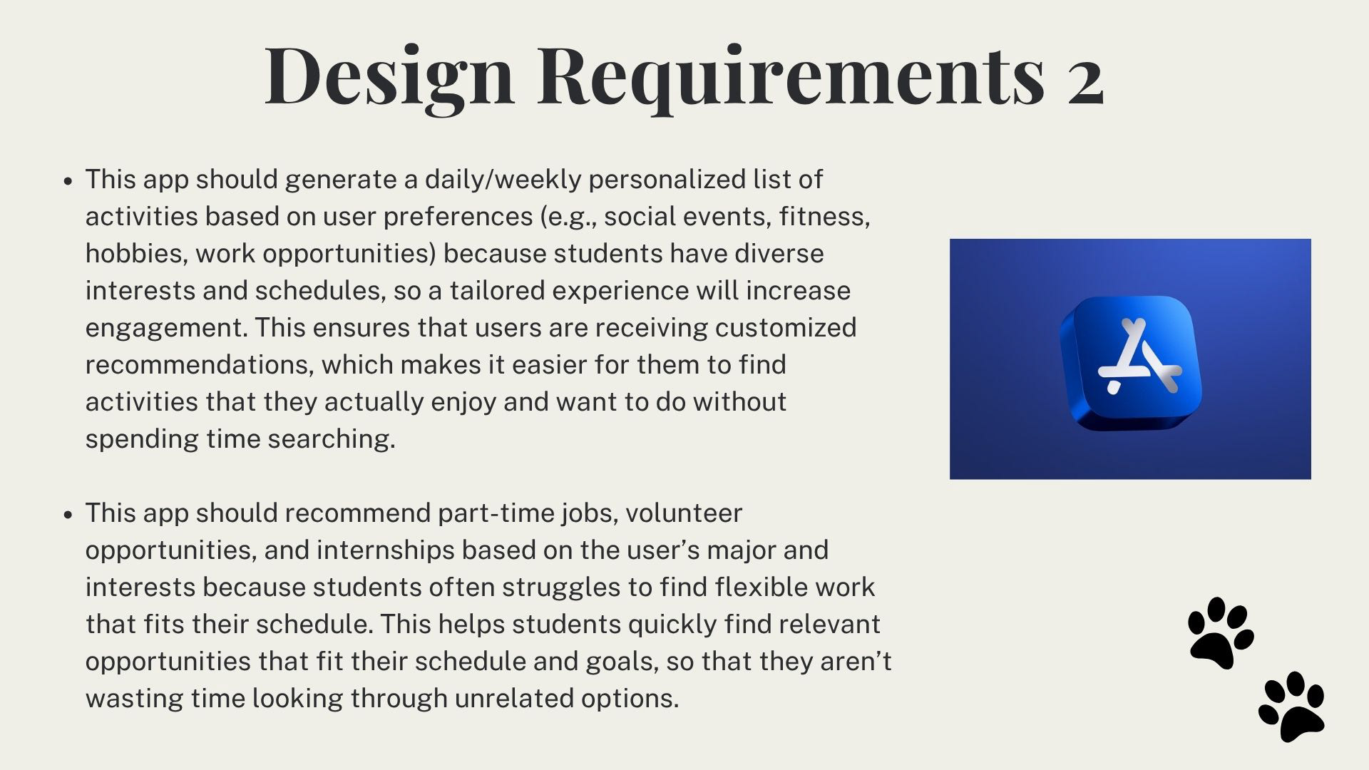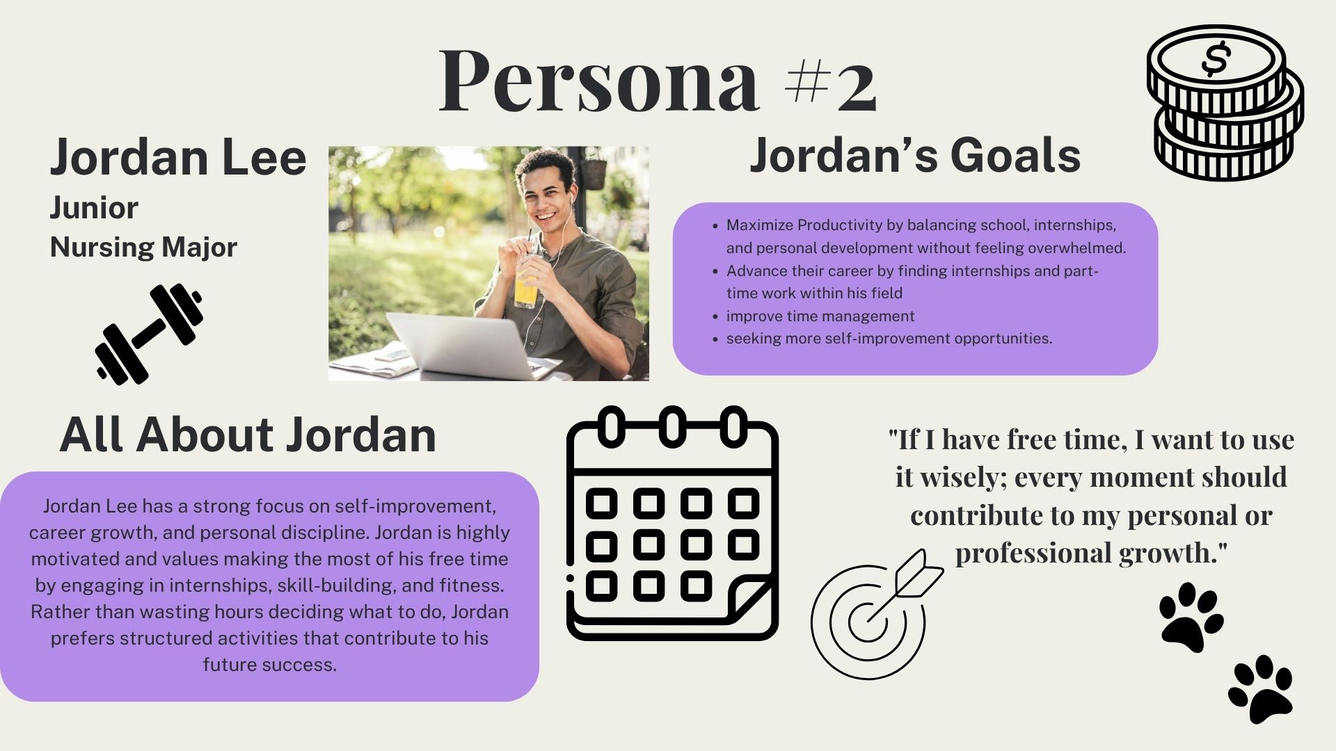 We developed a focused design question, crafted thoughtful research questions, and conducted both user interviews and Google Forms surveys to gather insights from students. I helped lead the analysis process, identifying user patterns, needs, and “a-ha” moments that directly informed our final design requirements.