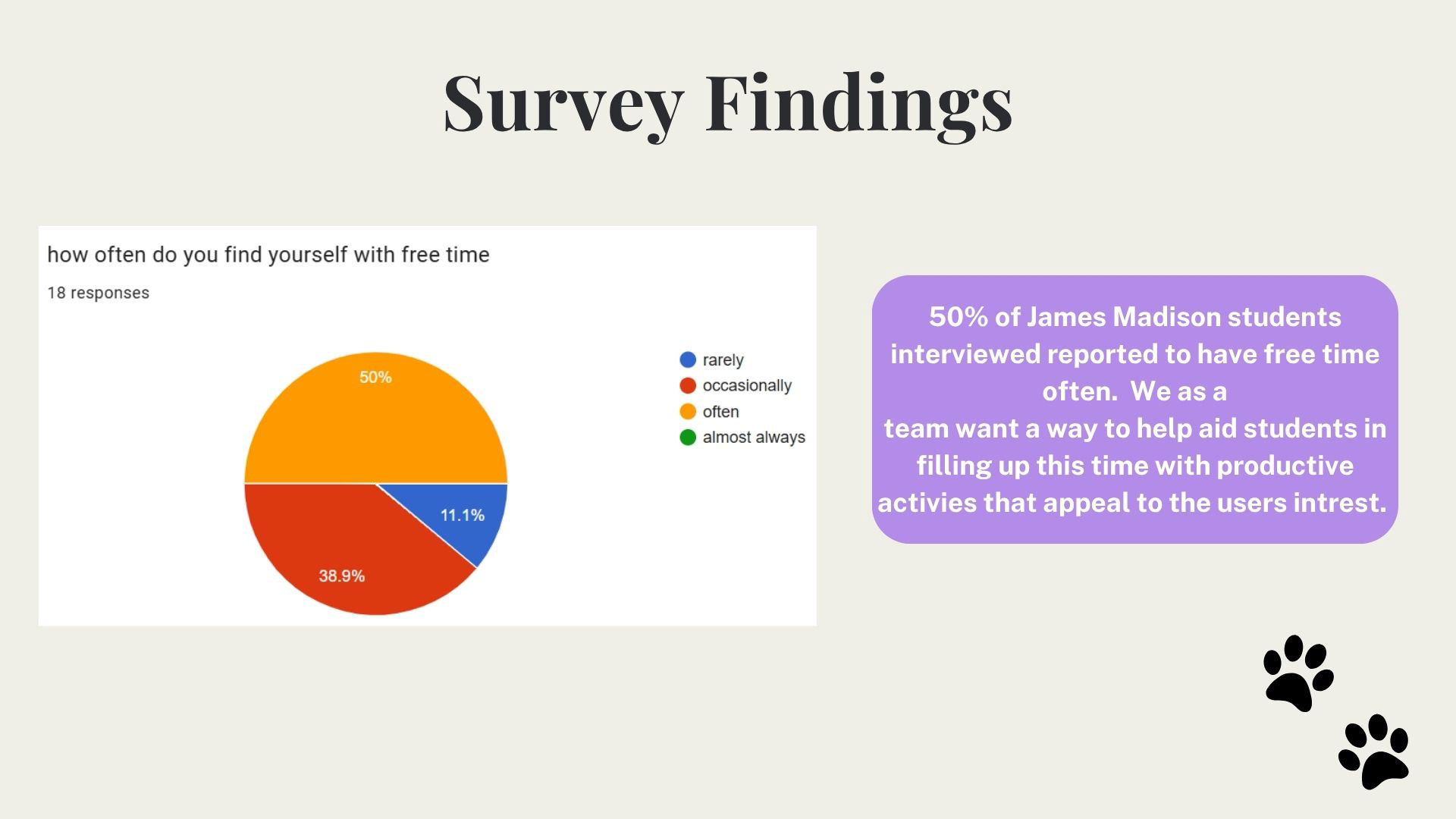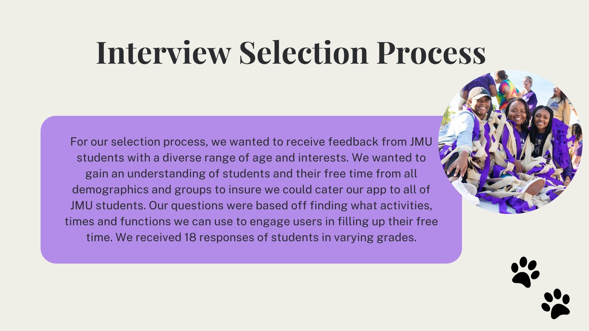 In SMAD 203: User Experience Design, our team tackled the challenge of designing a web app that would solve a real user need on JMU’s campus.